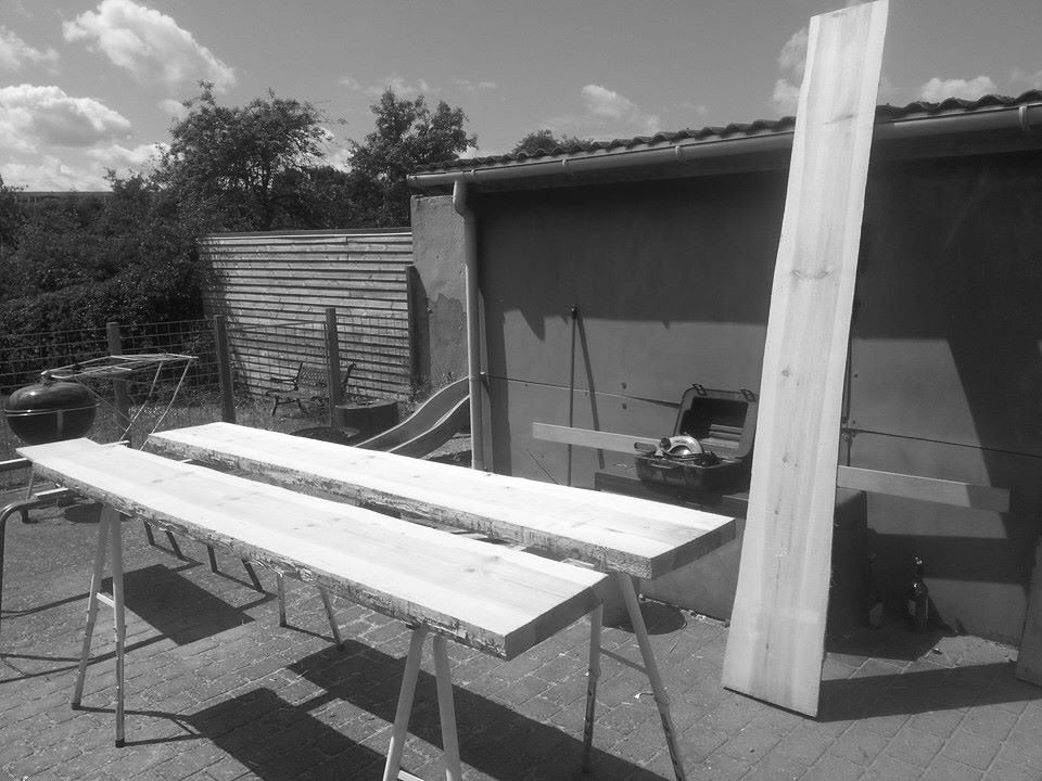 Dan fortsatte sit arbejde i baghaven, og begyndte stille og roligt at få mere erfaring med at arbejde med planker.