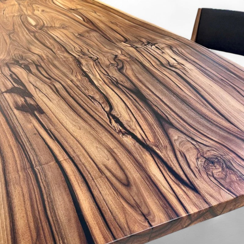 ✨ Denne træsort er for dig, der ønsker et bord med Middelhavets sjæl – dramatisk, kontrastfuldt og eksklusivt.