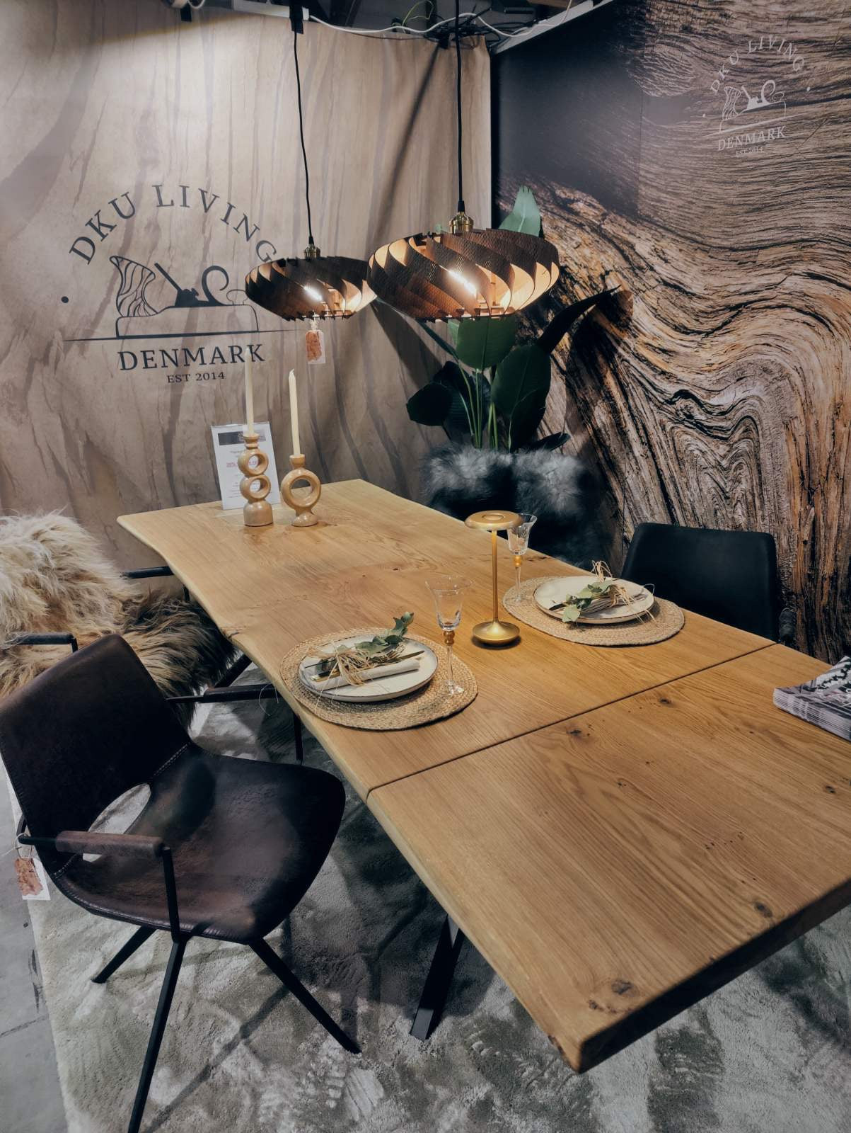 DKU Livings signaturborde laves af to spejlvendte planker – en løsning, der giver et eksklusivt, naturligt og harmonisk look. Brede planker er særligt sjældne og derfor særligt eftertragtede.